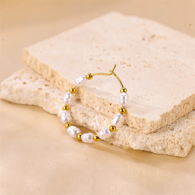 Embrace the blend of sophistication and urban charm with these Inoxidable Stainless Steel Pearl Earrings