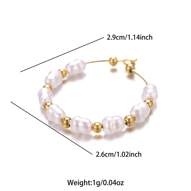 - Elevate your style with Inoxidable Stainless Steel Pearl Earrings, elegantly 18K Gold Plated for both women and men.
