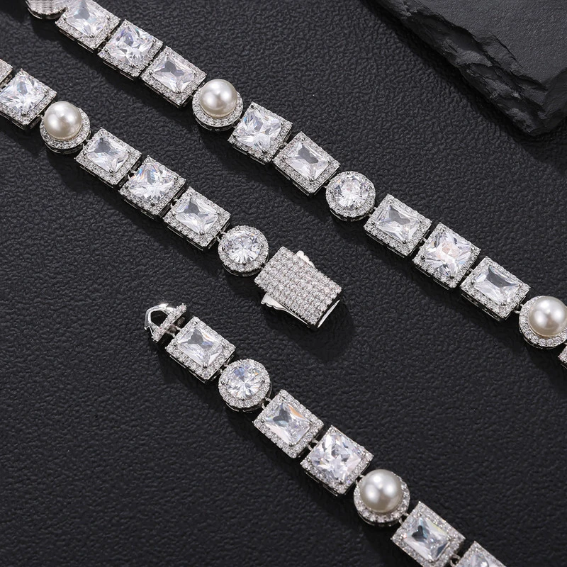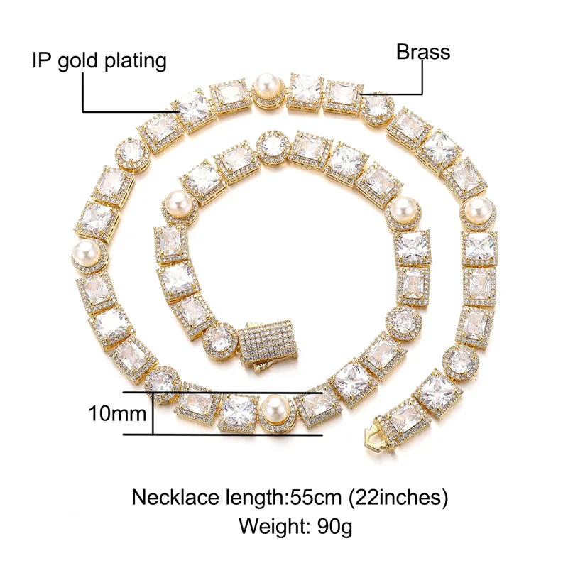 “Elevate your style with the 10MM Bling Tennis Chain featuring a Pearl Necklace, adorned with AAA CZ Cubic Zirconia for men and women.