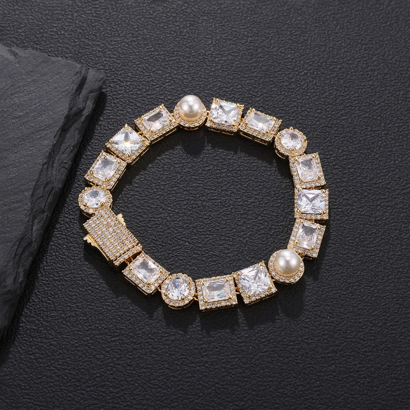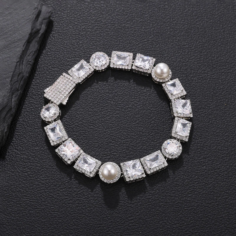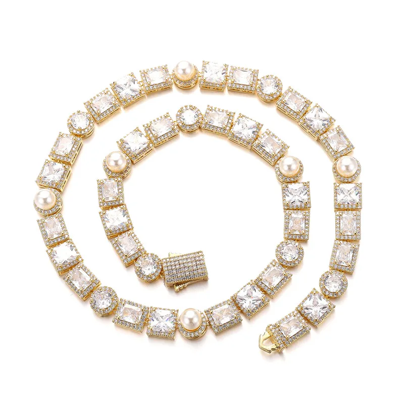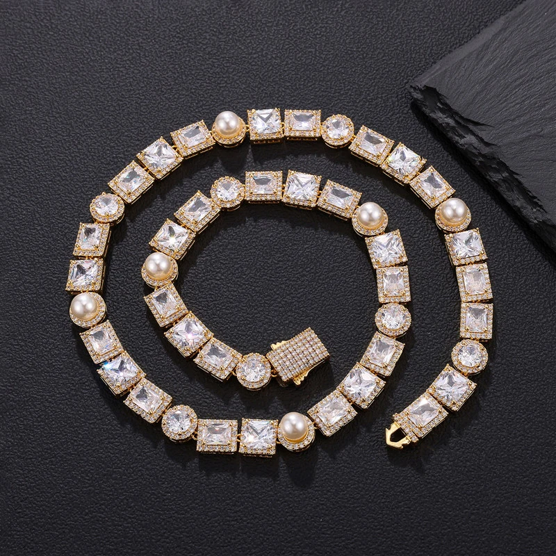 Embrace the bling culture and showcase your unique style with this Iced Out Bling Tennis Chain featuring a Pearl Necklace – the epitome of rapper-inspired jewelry.”