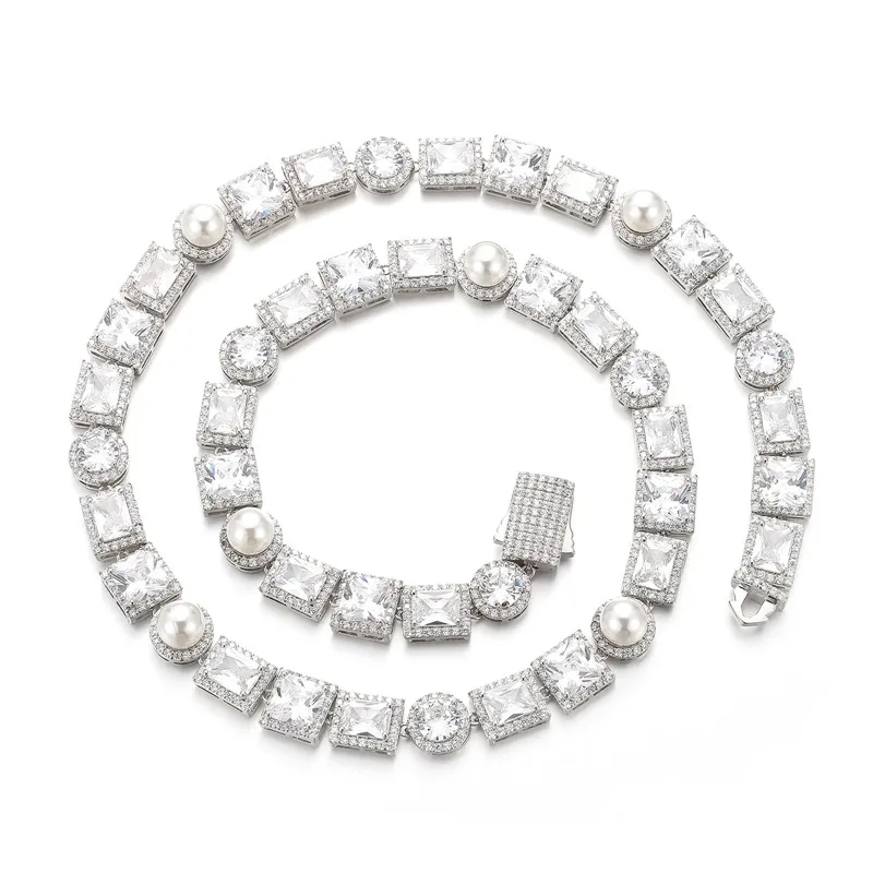 Elevate Your Look: 10MM Bling Tennis Chain with Pearl Charm