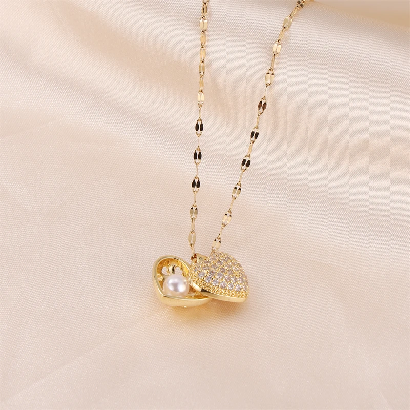 Heartfelt Elegance: Hip Girl Pearl Heart Shell Necklace for Women