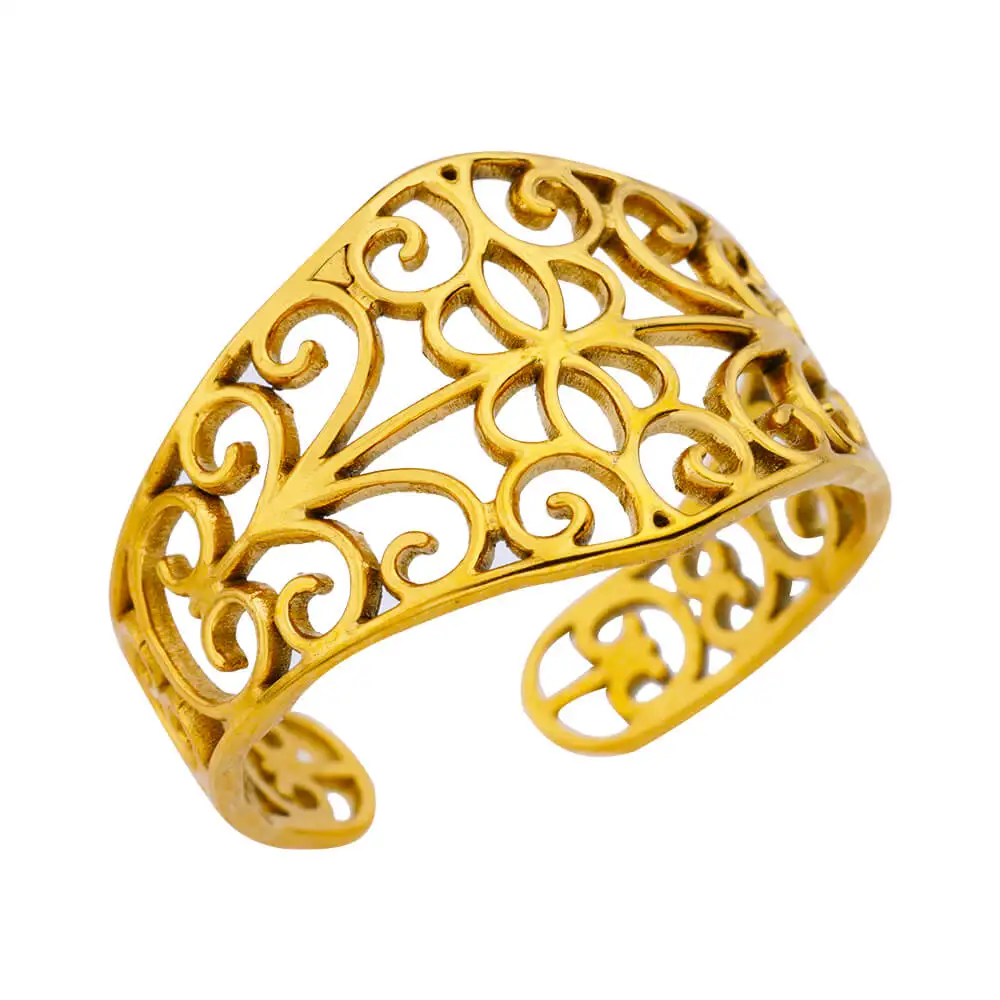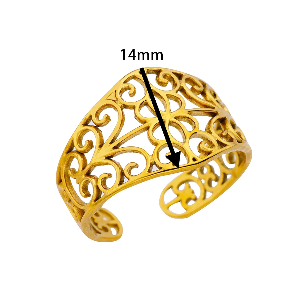 Elevate your style with our Stainless Steel Hollow Vine Open Ring for Women, a perfect blend of vintage charm and minimalist beauty. This unique ring features a hollow vine design, exuding elegance and sophistication. The gold-plated finish adds a touch of glamour, making it suitable for various occasions, including weddings and special events.